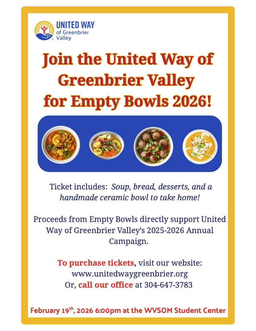 Thank you to everyone who attended this year’s Empty Bowls event! Your support helps build the momentum behind our annual campaign and strengthens our ability to invest in the nonprofit organizations that are making a real difference across the Greenbrier Valley.